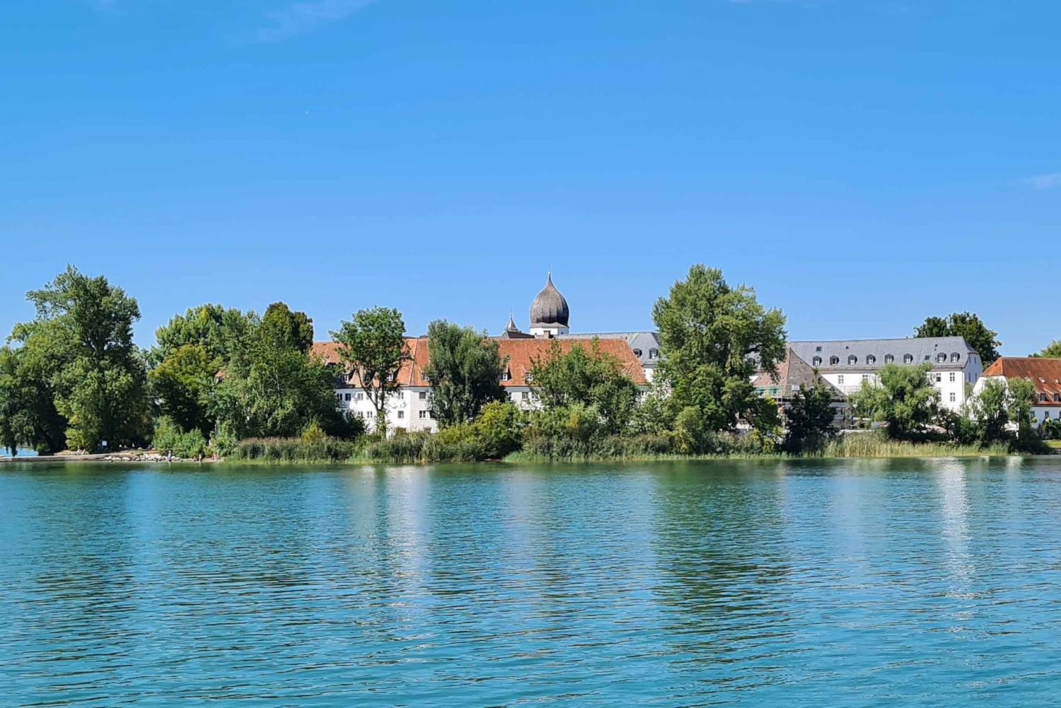 Dagsudflugt med Peter fra Hotel München til Chiemsee: Overfart med skib og Herreninsel med besøg på Herrenchiemsee-slottet inkluderet, besøg på Fraueninsel, afslappet retur til München.