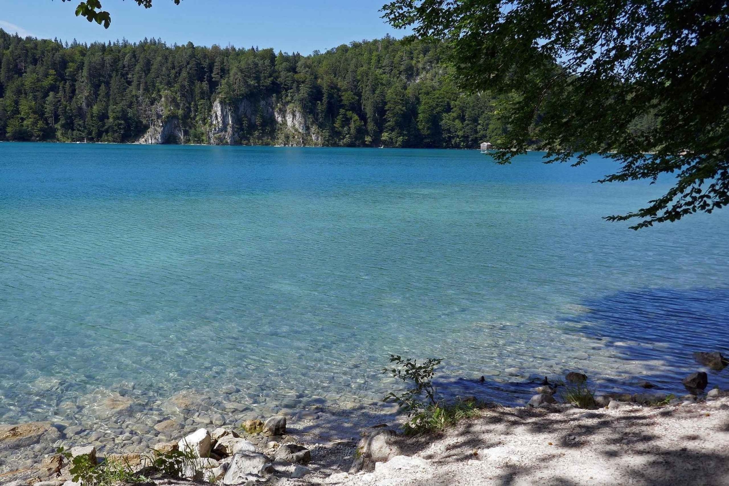 Durante los meses más cálidos, los huéspedes también tienen la opción de darse un refrescante baño en las aguas cristalinas del Alpsee, un lago alpino situado debajo del castillo. Esto es totalmente opcional y depende del clima, pero ofrece una forma única de experimentar el paisaje, tal como lo hacen los bávaros en los días de verano.